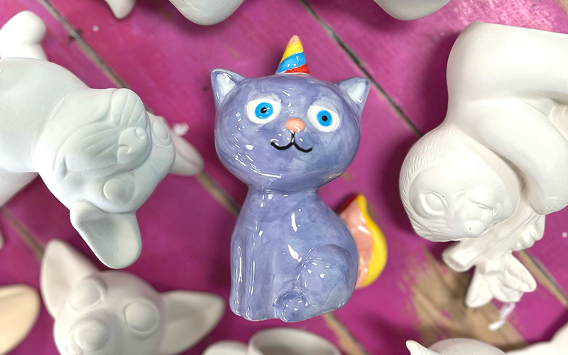 Our Figurines Package is $200 for up to 8 kids, and $18 per additional child. Cost includes pottery piece, paint, glazing & firing. Pieces will be ready for pick up in one week. Cake, light snacks & tabletop decorations are allowed. A staff member will be on hand to help facilitate.